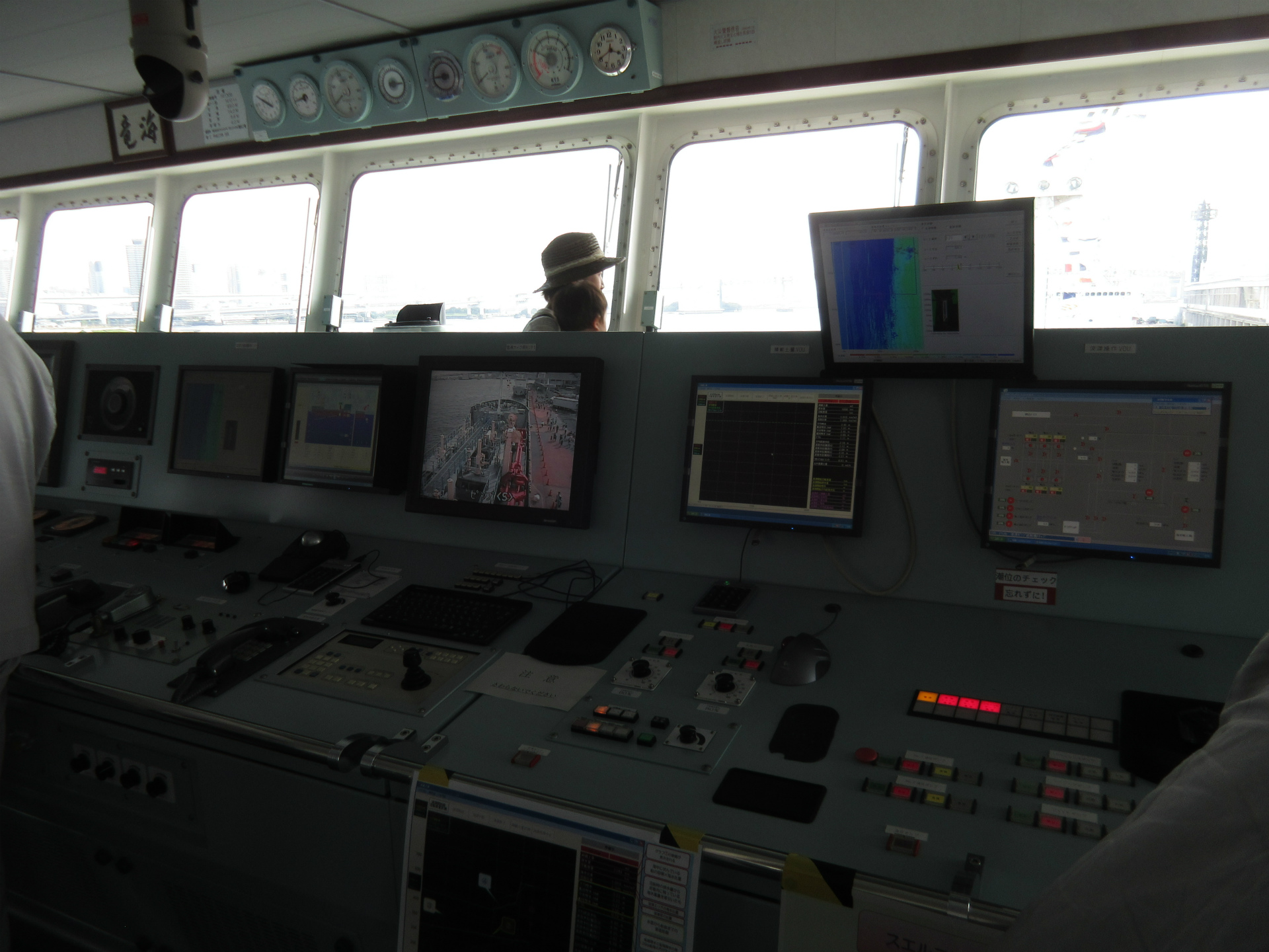操舵室です。計器が並んでいるさまがわくわくしてきます。