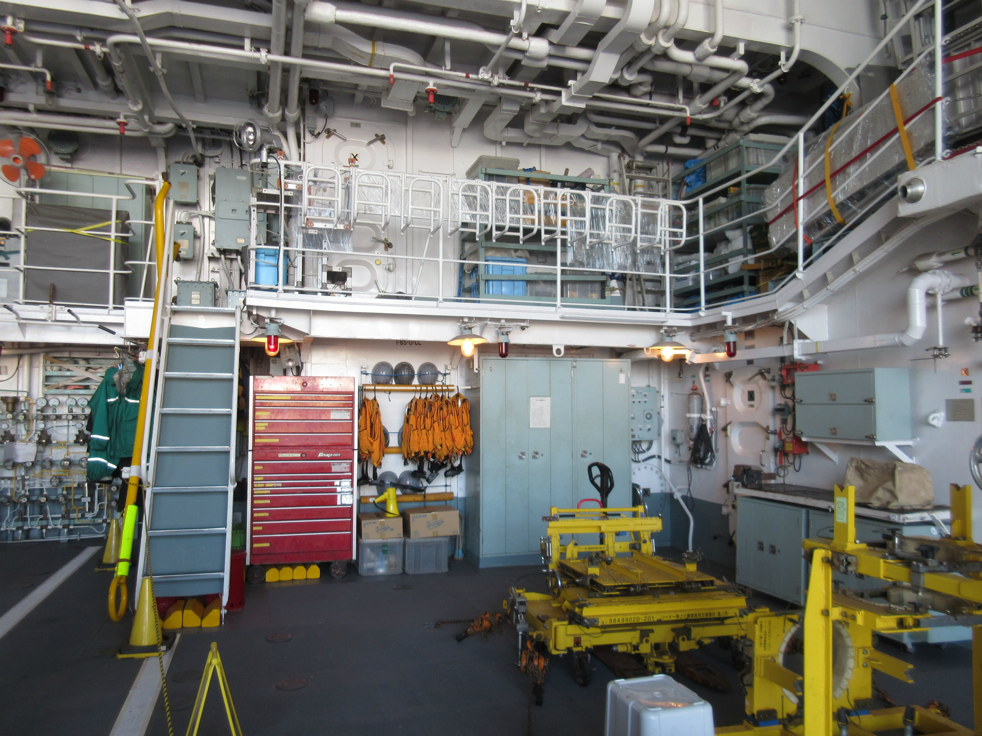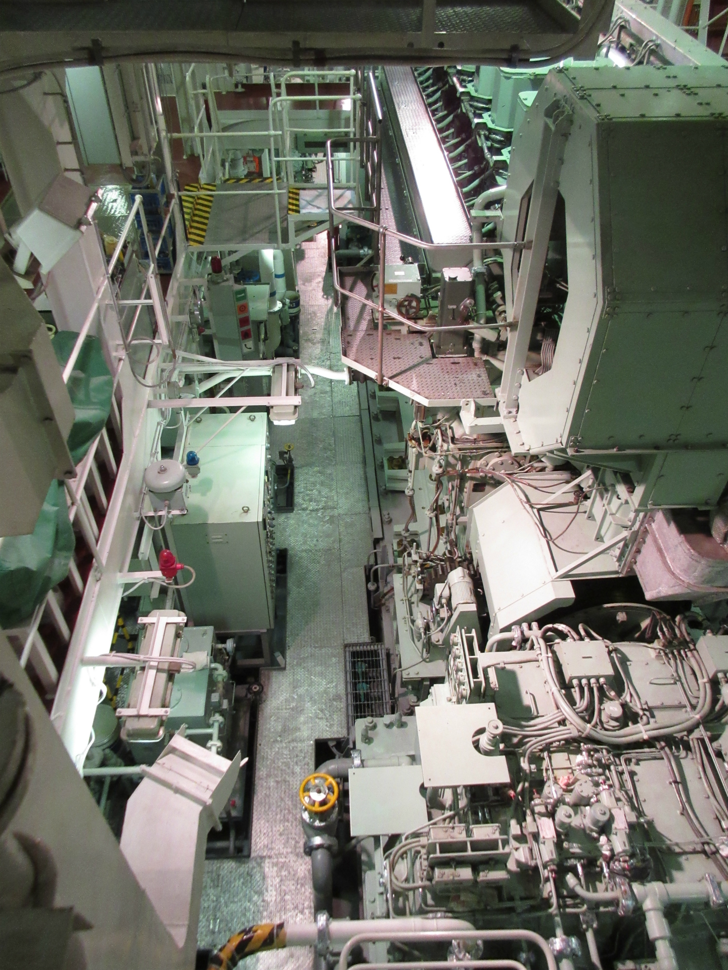 中央に大きな機械がありますが、これはおそらく主機関ではなく発電機関です。