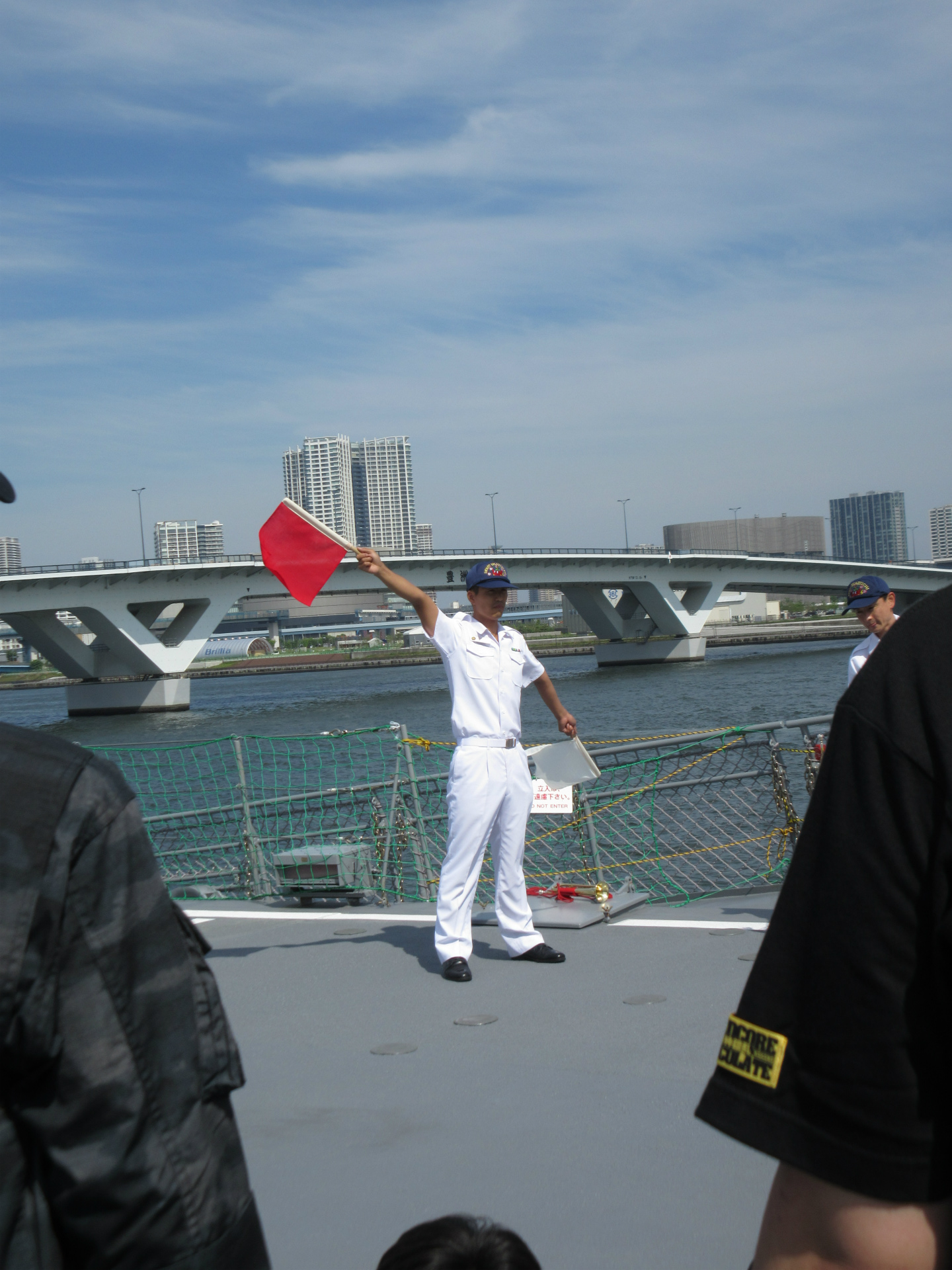 また、後部甲板では航海科の方がラッパの演奏と手旗実演をしてくださっていました。