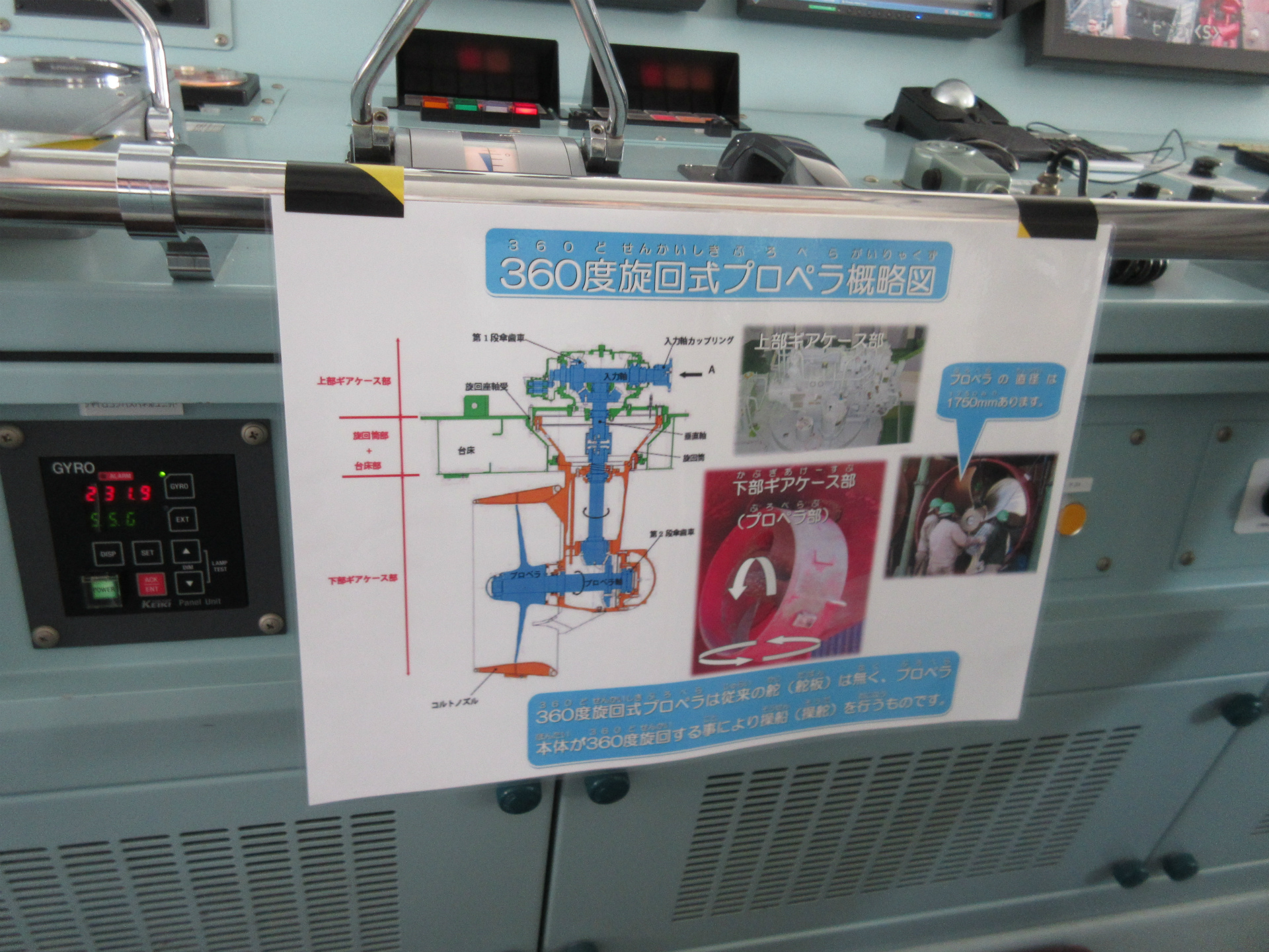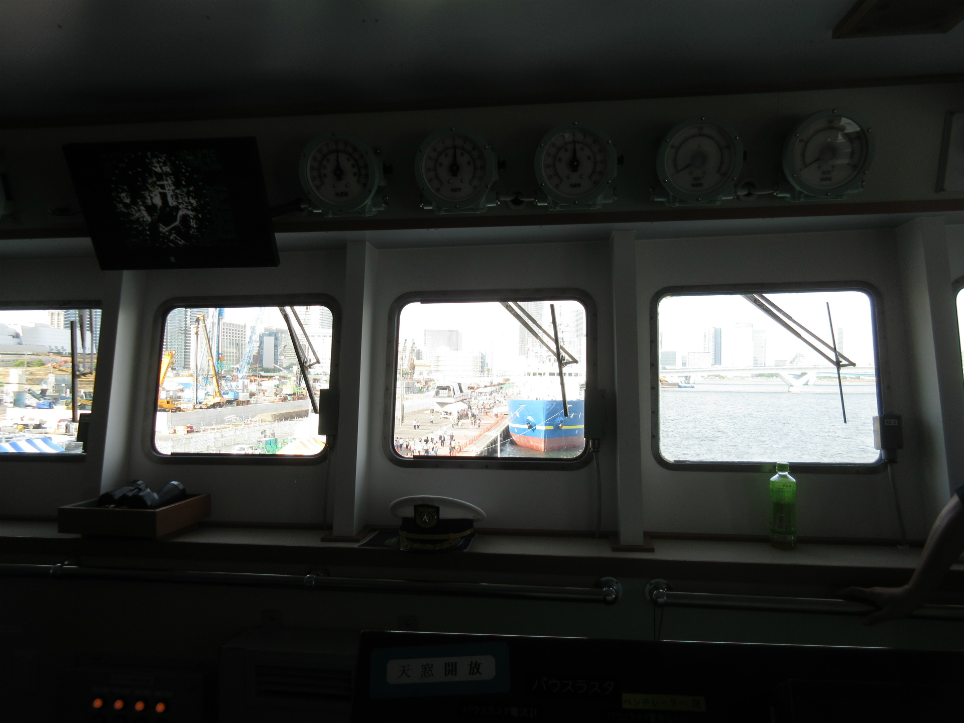 操舵室です。計器が並んでいるさまがわくわくしてきます。