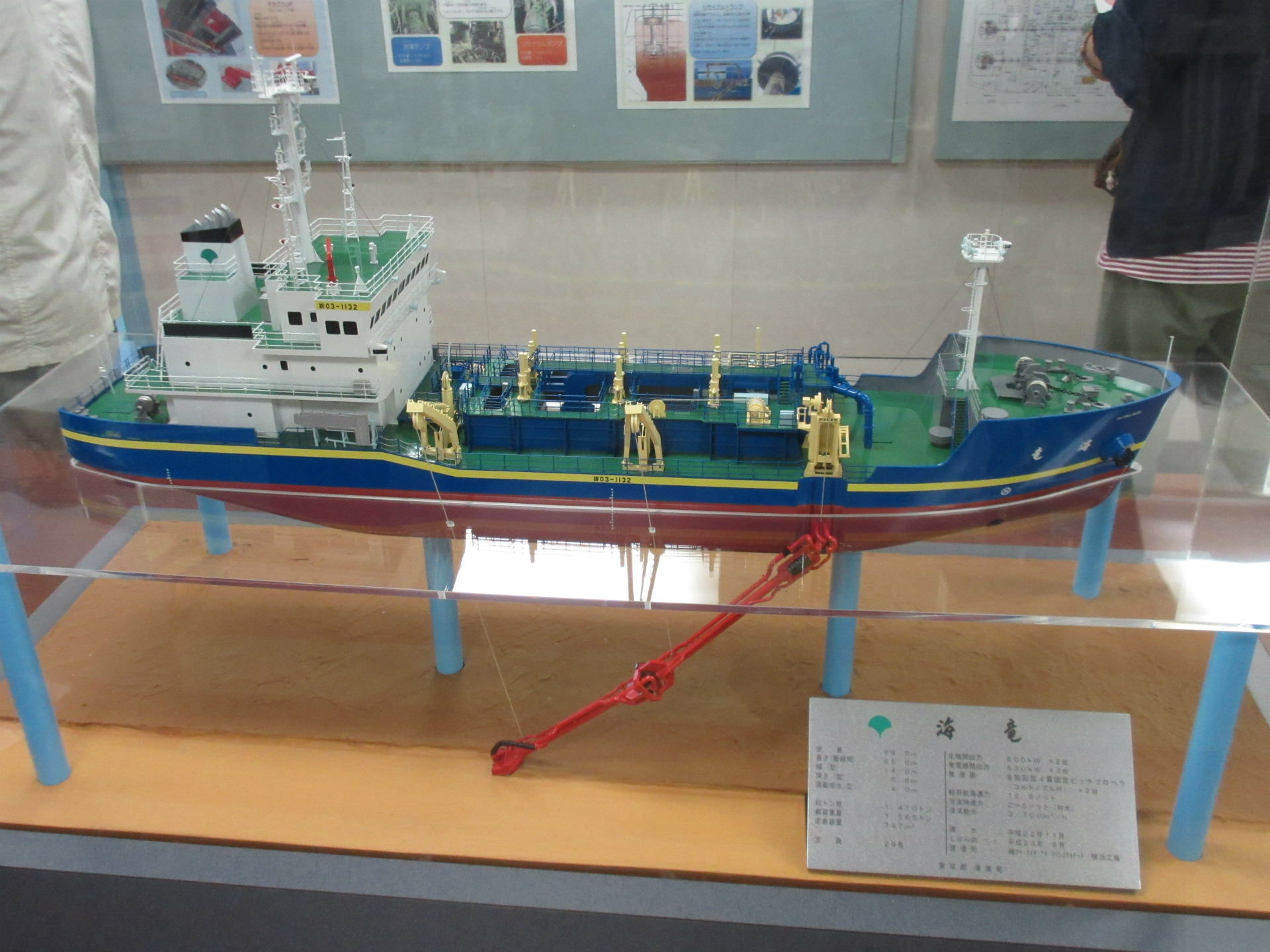 浚渫船とは海底に堆積した土砂を取り除く為の作業船で、海竜は航行しながら海底に下ろしたドラグアームにより土砂を吸い込む「自航ドラグサクション浚渫方式」の作業船だそうです。