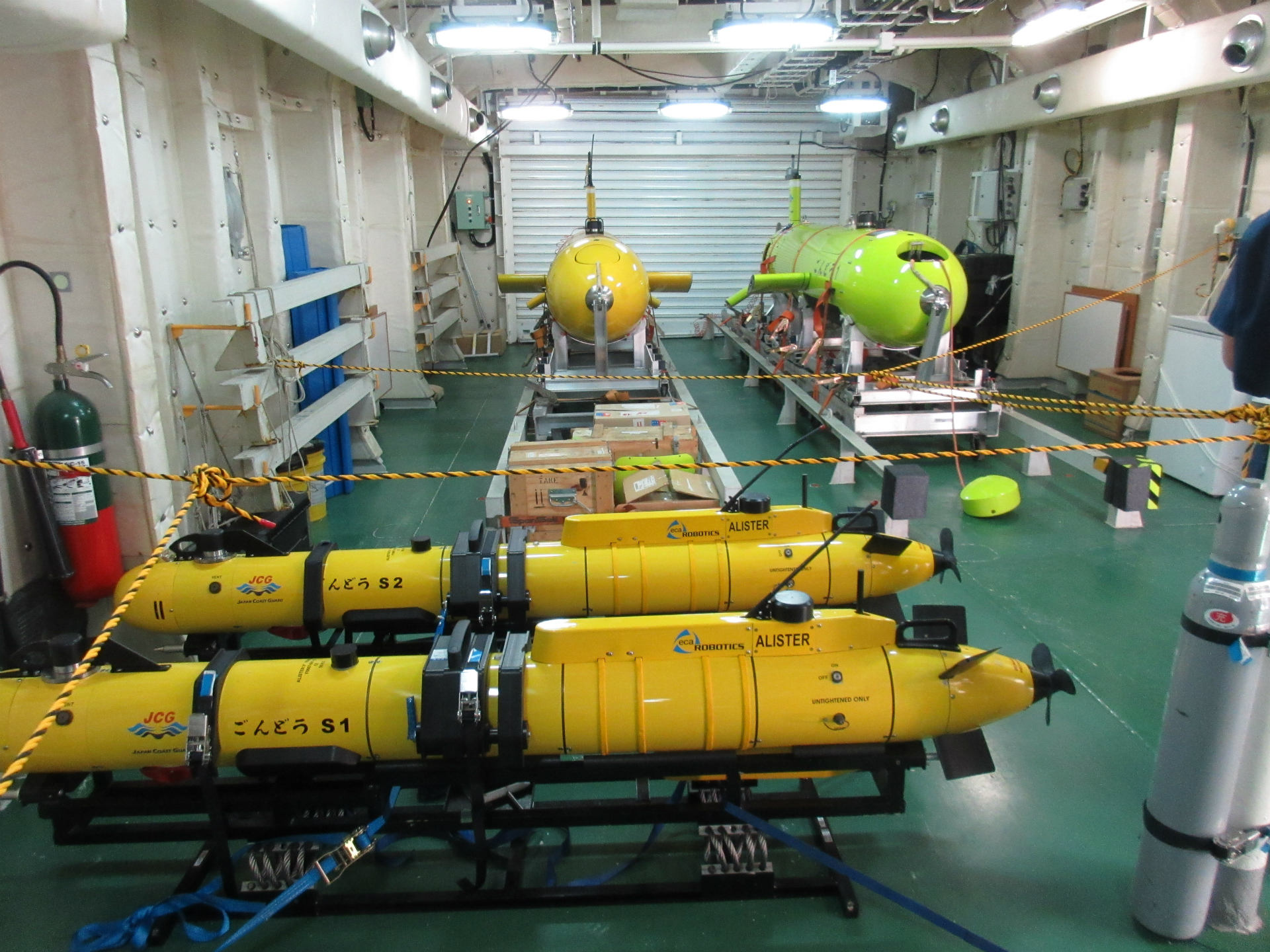 こちらに4台写っているのは「ごんどう」という自律型潜水調査機器(AUV)です。